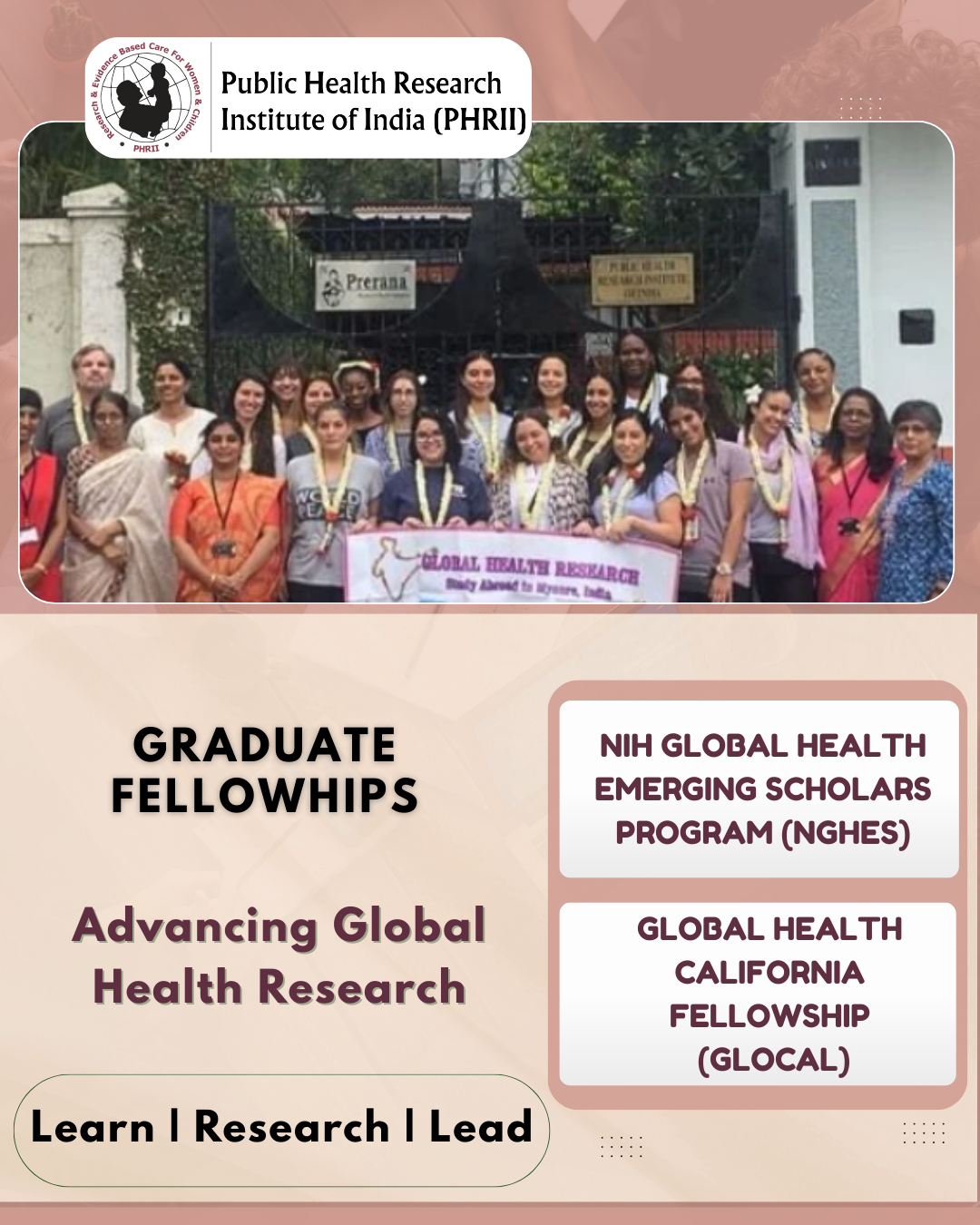 PHRII hosts graduate fellows from around the world, serving as an NIH-recognized training site for global health research. Our fellowships offer early-career researchers the opportunity to address critical health challenges affecting vulnerable populations in low-resource settings. Contact the individual fellowship agency for more information.